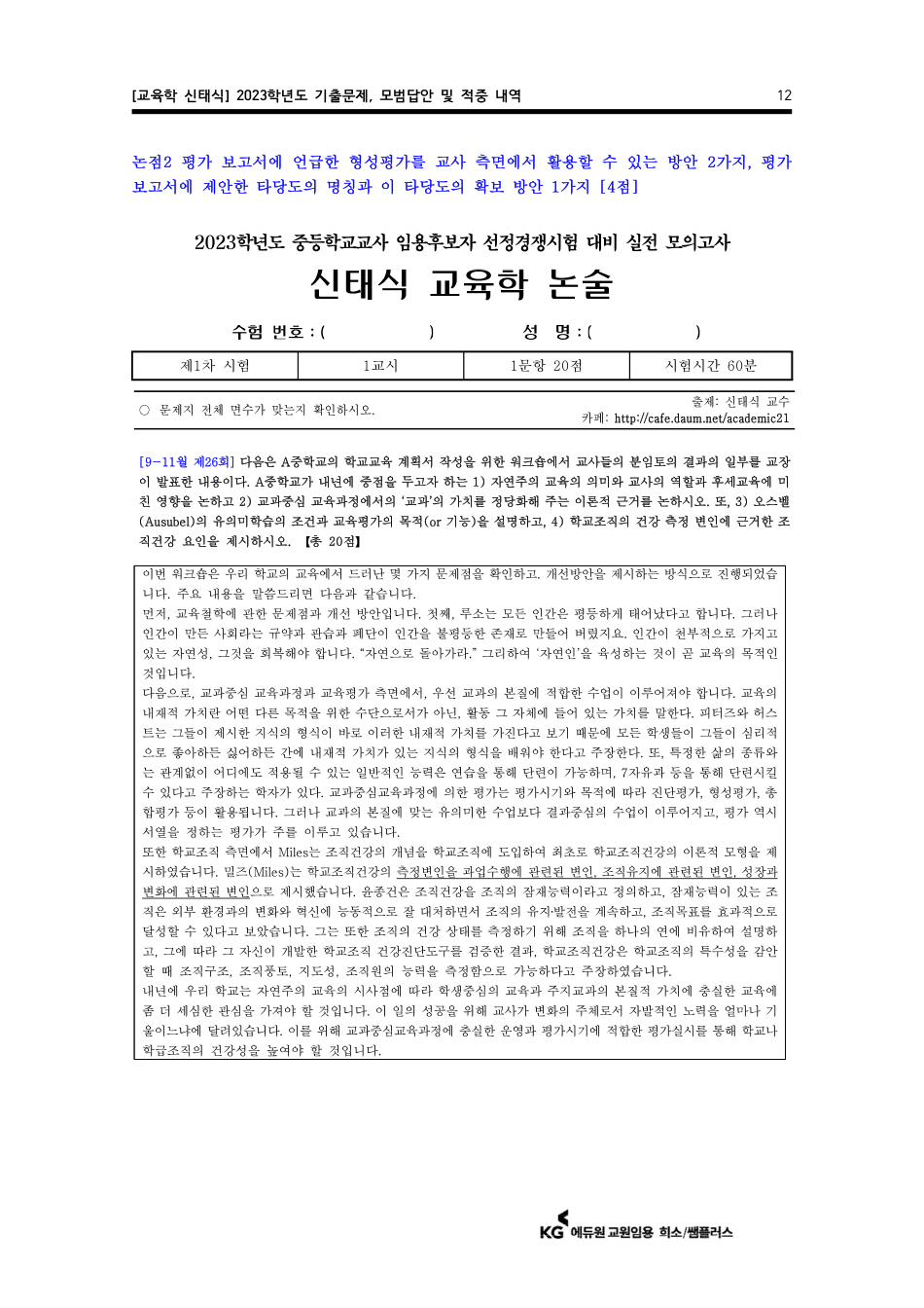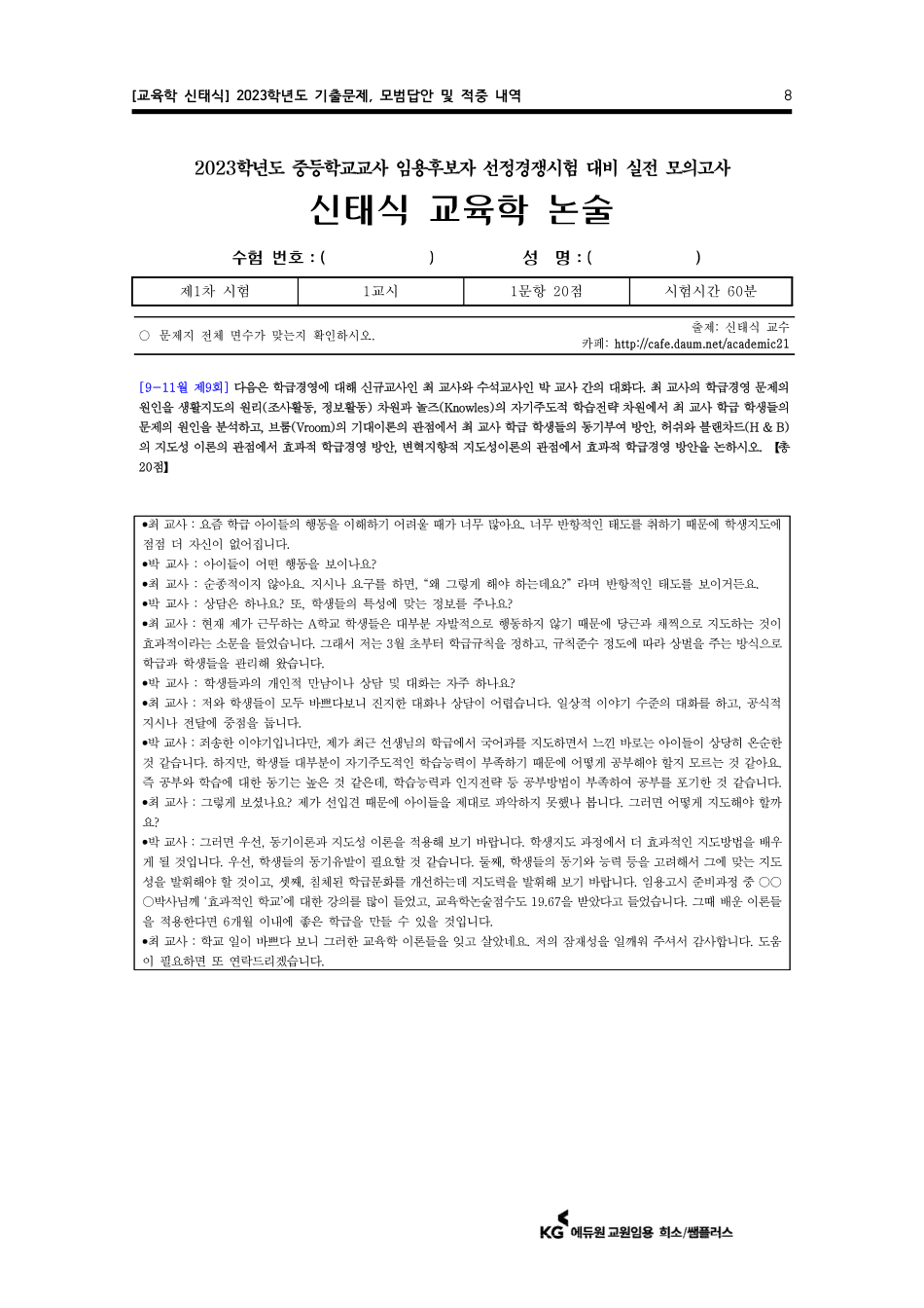 1Â÷ ½ÃÇèÀ» º¸±â Àü¿¡µµ ±³¼ö´ÔÀÌ Á÷Á¢ ÀÚÇÊ·Î